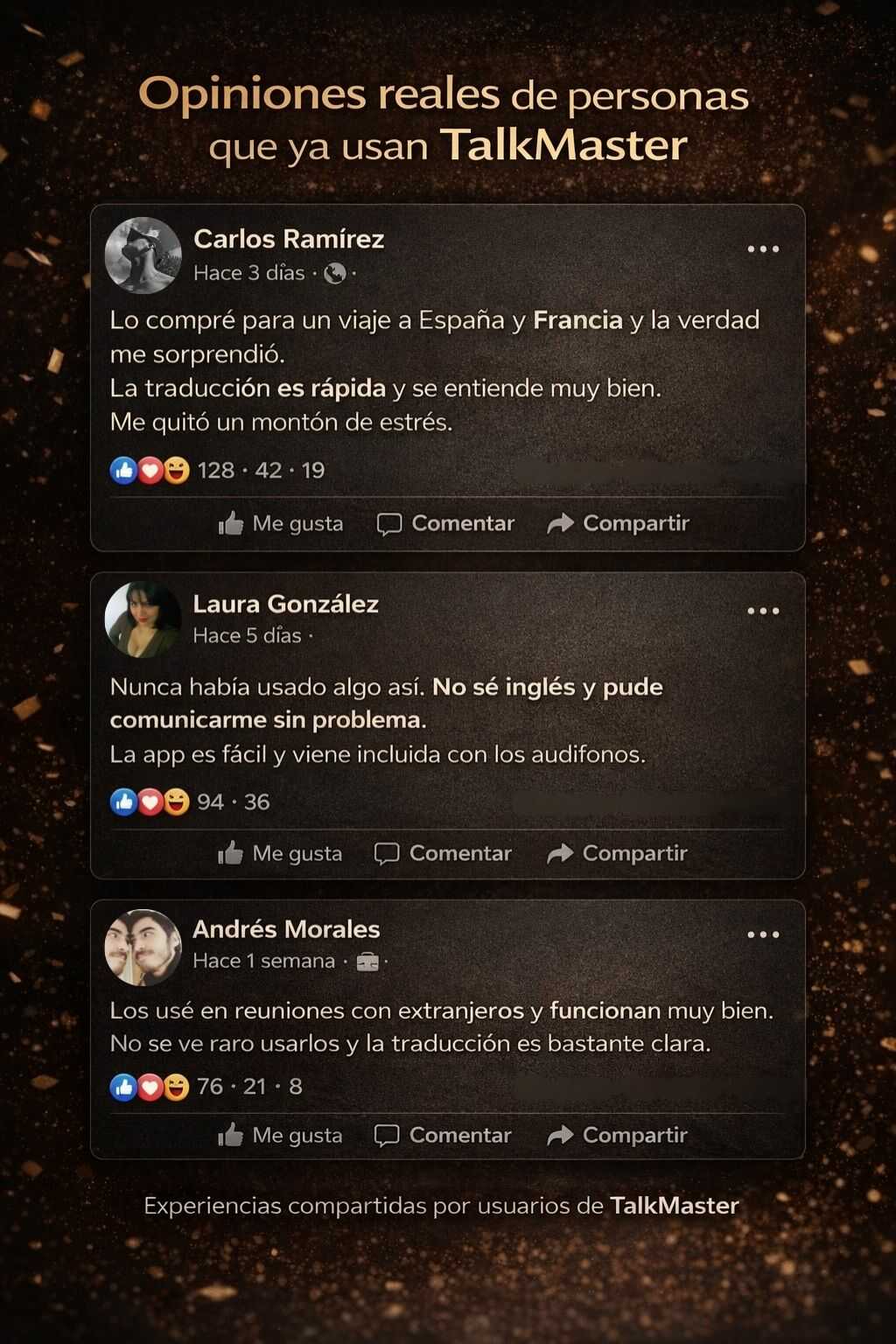 Audio claro para traducción, llamadas y uso diario.