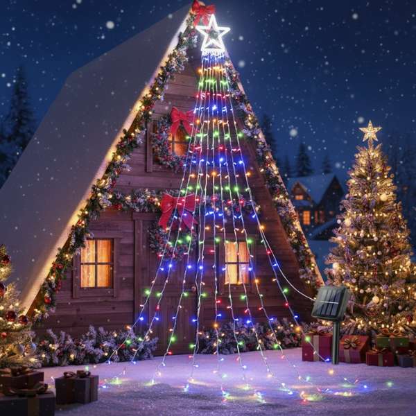 TwinkleStar® Cascada de Luces LED Solares con Estrella Navideña