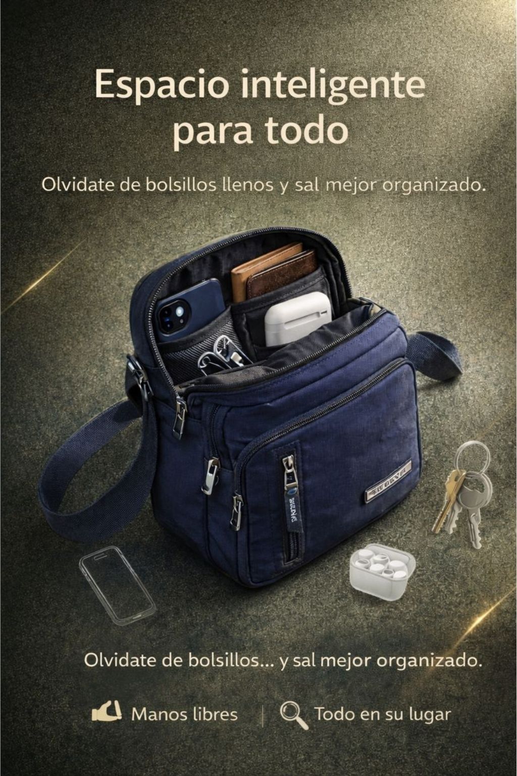 - Acceso fácil y seguro: cierres que mantienen tus objetos protegidos.